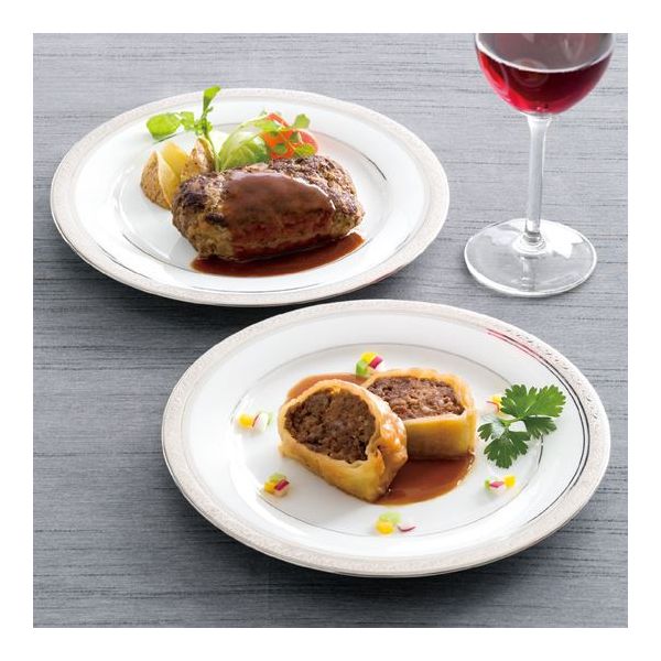 <内祝い お返し>デミグラスソースで味わう、神戸牛の旨みを存分に味わえるジューシーなハンバーグと、上品な甘みと香り高いマデラ酒を使用したソースで召し上がるサクサクした食感のビーフパイ。