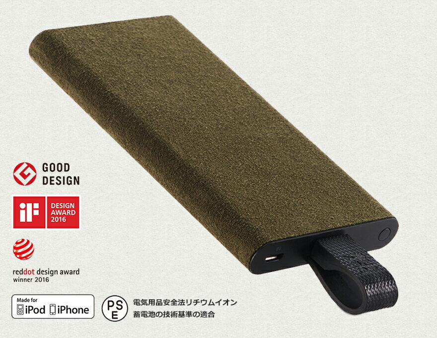NuAns TAGPLATE Lightning モバイルバッテリー 6000mAh スエードカーキ NA-PLATE-L-SK