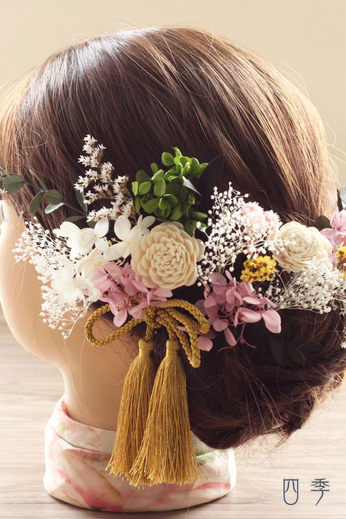 お花にはワイヤーが付いていますのでどんなヘアにも自在にアレンジができます。
