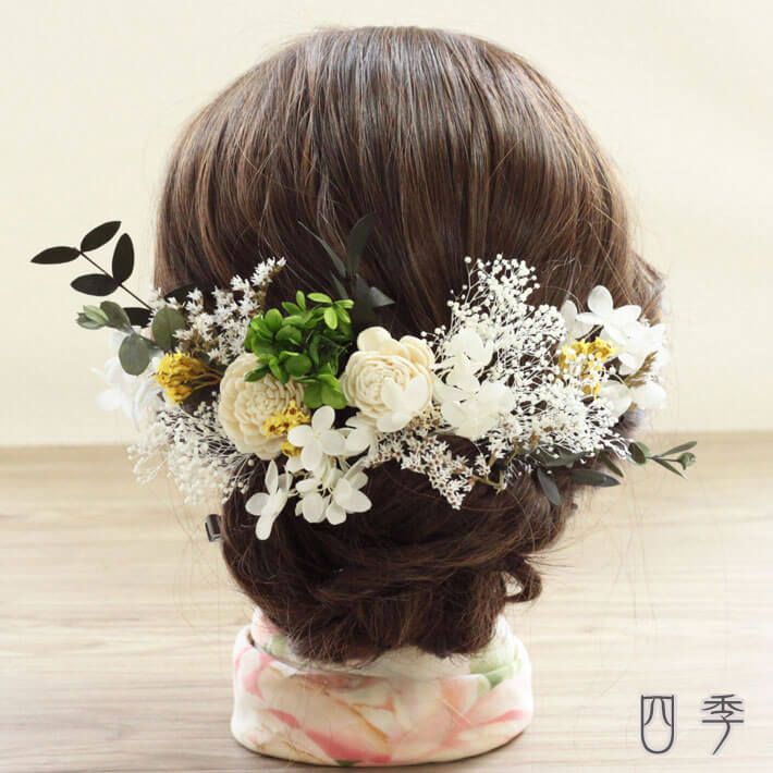 お花にはワイヤーが付いていますのでどんなヘアにも自在にアレンジができます。