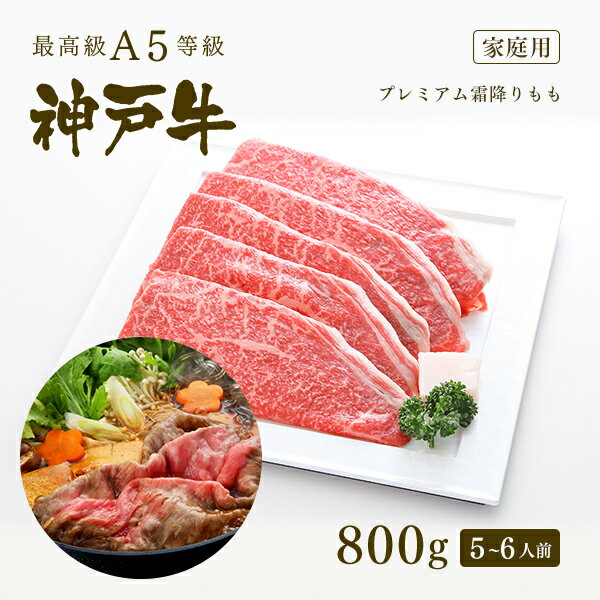 【期間中ポイント10倍★3/4 20:00-3/11 1:59】【家庭用】A5等級 神戸牛 プレミアム霜降りもも(プレもも) すき焼き(すきやき) 800g(5〜6人前) ◆ 牛肉 黒毛和牛 神戸牛 神戸ビーフ A5証明書付 グルメ お取り寄せ グリルド神戸