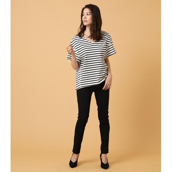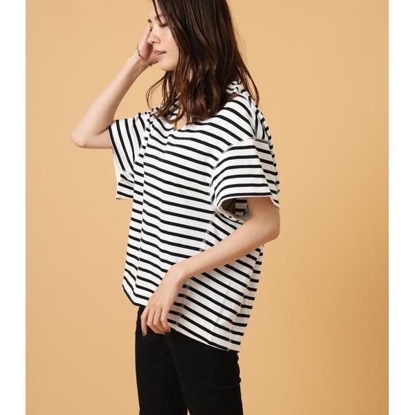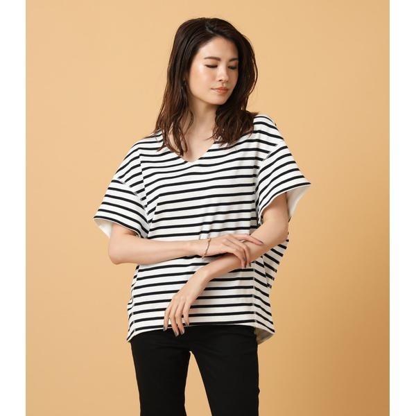 ボーダーニュアンスシルエット五分袖カットソー/アズールバイマウジー