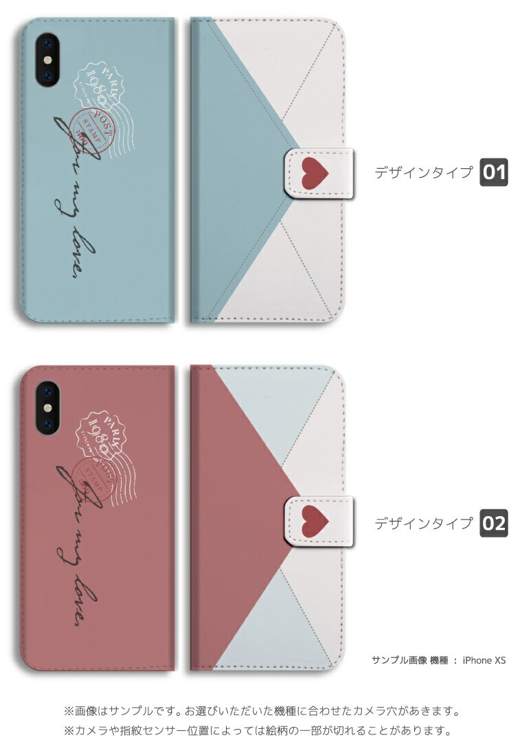 スマホケース 全機種対応 手帳型 iPhone12 mini Pro iPhone11 iPhone8 iPhone SE2 SE XS XR ケース Xperia 5 10 1 II Galaxy A41 S20 AQUOS sense3 lite plus OPPO Reno3 A カバー おしゃれ Mail letter デザイン 手紙 バイカラー bicolor ニュアンス カラー ハート Heart