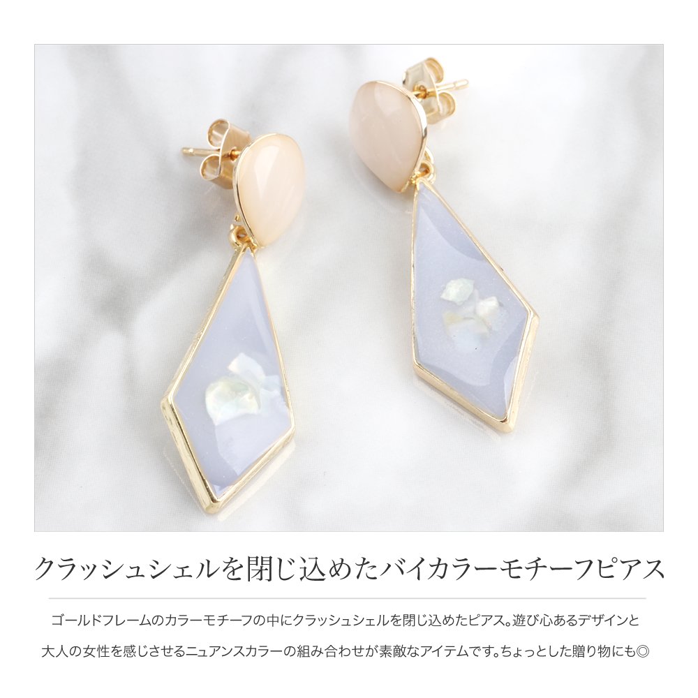【全品送料無料!×P最大44倍!】ピアス レディース シンプル ブランド 揺れる スタッドピアス バイカラー クラッシュシェル ニュアンスカラー 大人カジュアル シンプル 可愛い イエロー ミント ピンク サックス outlet