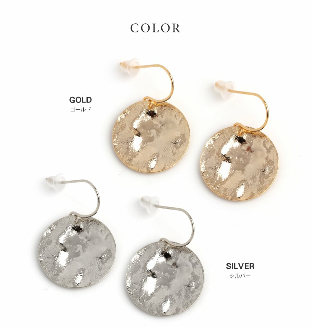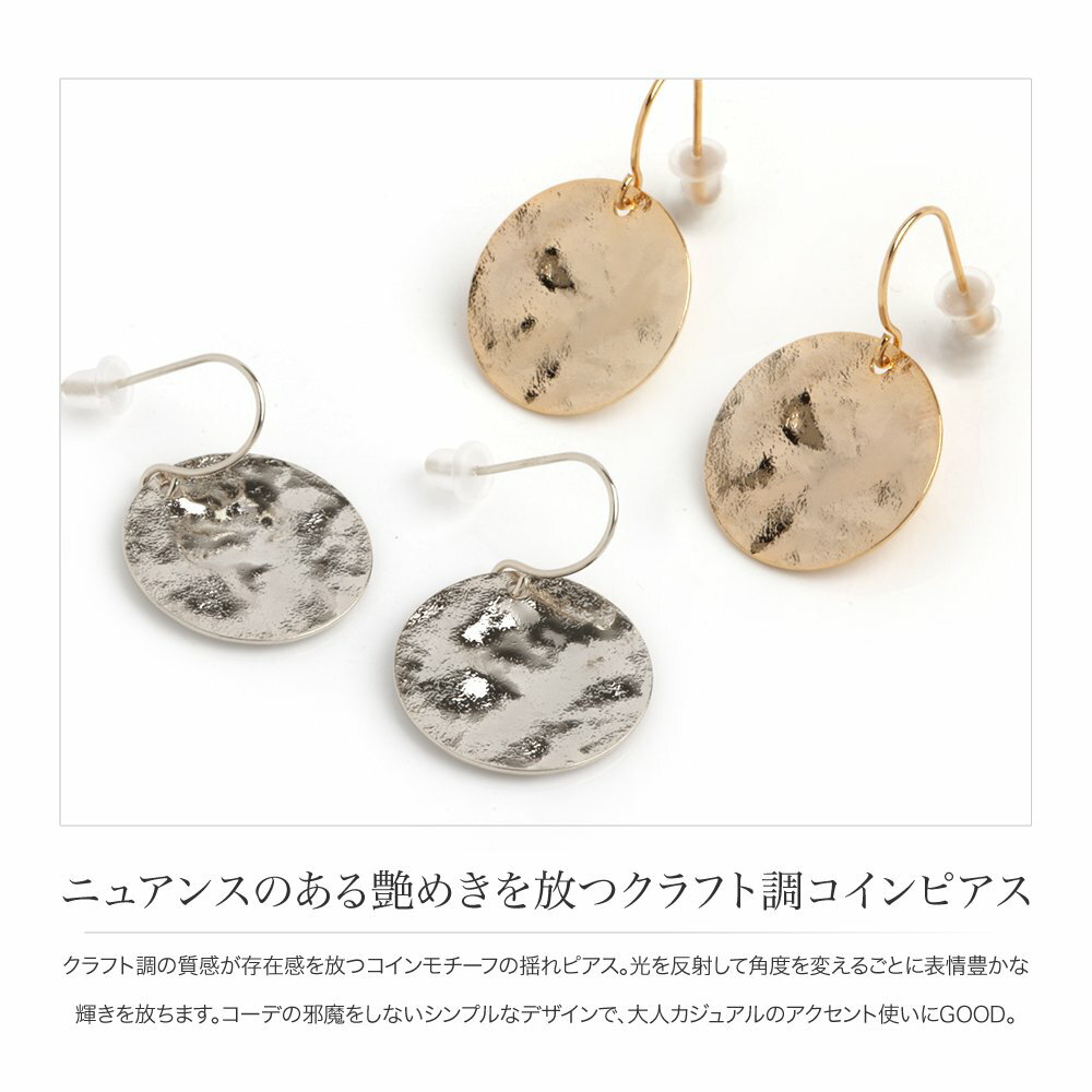 【全品送料無料!×P最大44倍!】ピアス フックピアス 金属アレルギー ニッケルフリー ポスト レディース 揺れる コイン クラフト調 ブランド ニュアンス 大人カジュアル 上品 エレガント シンプル フェミニン ゴールド シルバー outlet