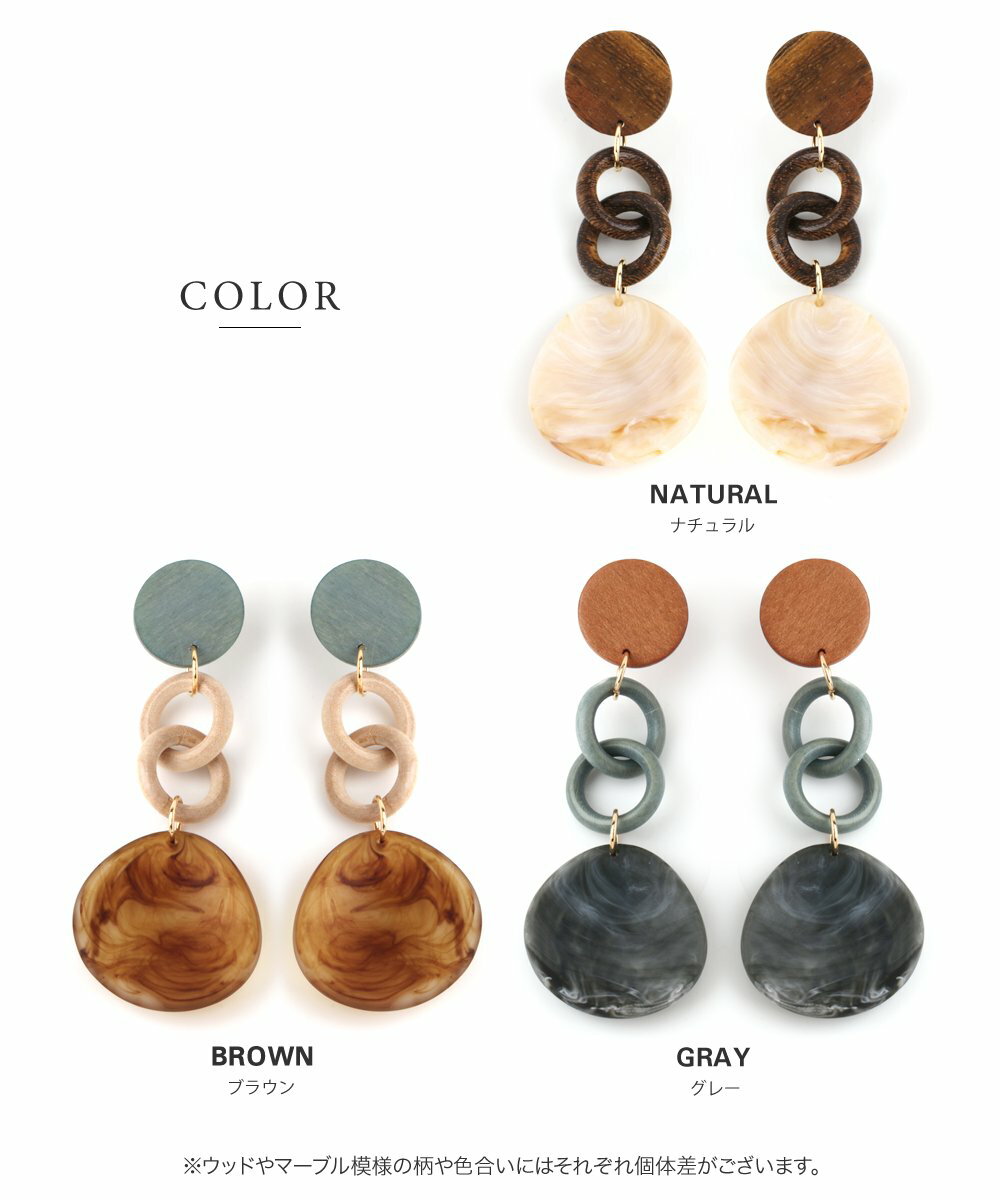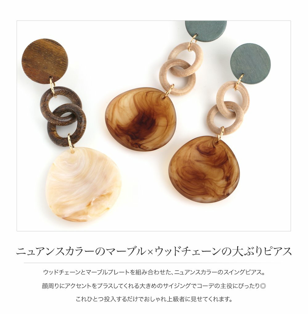 【全品送料無料!×P最大44倍!】ピアス 大ぶりピアス 金属アレルギー ニッケルフリーポスト 揺れる 大きめ ウッド 木 マーブル プレート チェーン 大人カジュアル シンプル 大人可愛い ナチュラル ブラウン グレー ニュアンスカラー outlet