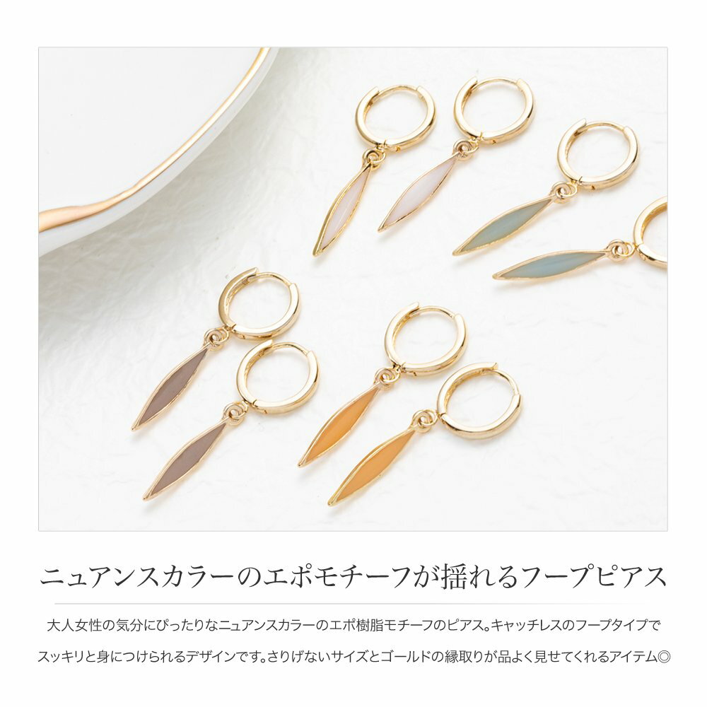 【全品送料無料!×P最大44倍!】ピアス フープピアス レディース 揺れる 中折れ キャッチレス リング 開閉式 エポ樹脂 ニュアンスカラー 大人 上品 エレガント 華奢 フェミニン ゴールド アイボリー オレンジ ブルー グレー outlet