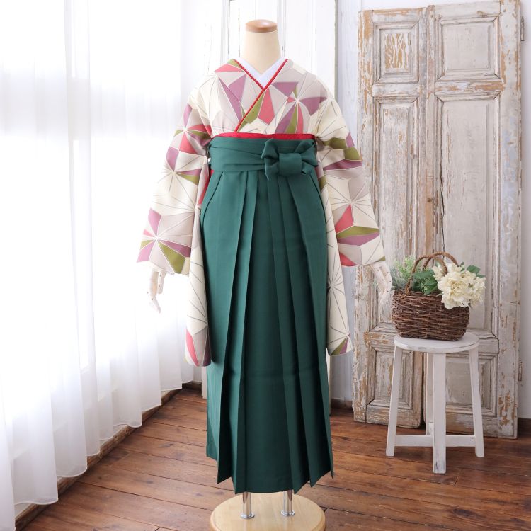 【レンタル】 往復送料無料 2尺袖 着物 袴 15点セット ひよこ商店 袴84-87cm(適応身長143-155cm) 袴セット 卒業式 ジュニア 麻の葉 女の子 アイボリー子供 kids ベージュ 茶 赤 ミント あさのは ニュアンスカラー パステル モダン 小学生 大学生 卒業式
