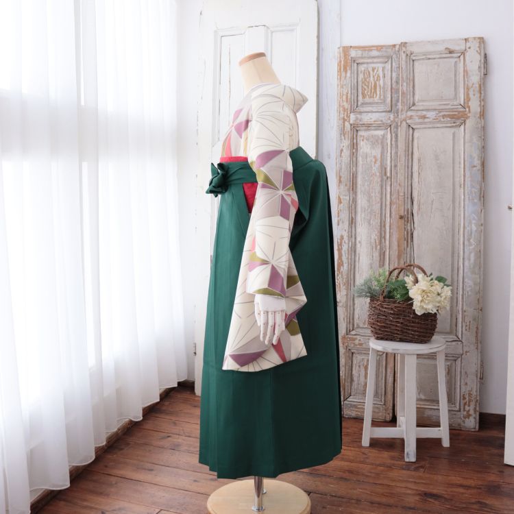 【セット内容】着物・袴・草履・バッグ・重ね衿半巾帯・肌襦袢+長襦袢一体化インナー・前板着付けベルト・ウエストベルト・腰ひも3本セット伊達締め ・マジックベルト・衿芯 ---------------【 ご注意 】--------------- 【ご注意】 こちらはレンタル商品となります。