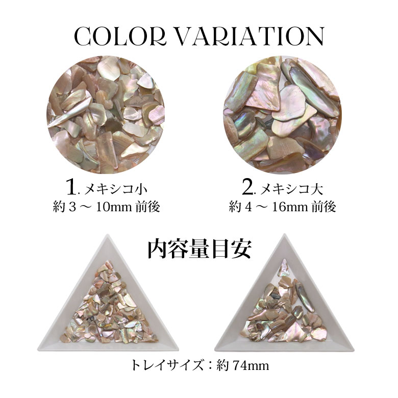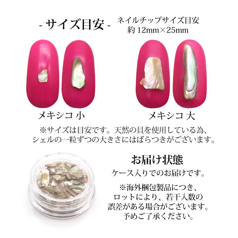 ネイルのワンポイントやレジン封入・クラフトにも◎ バリエーション 全2種 1.メキシコ 小:約3〜10mm前後 2.メキシコ 大:約4〜16mm前後 ※サイズは目安です。