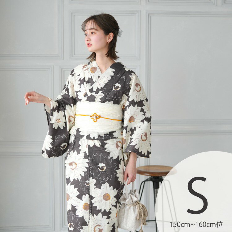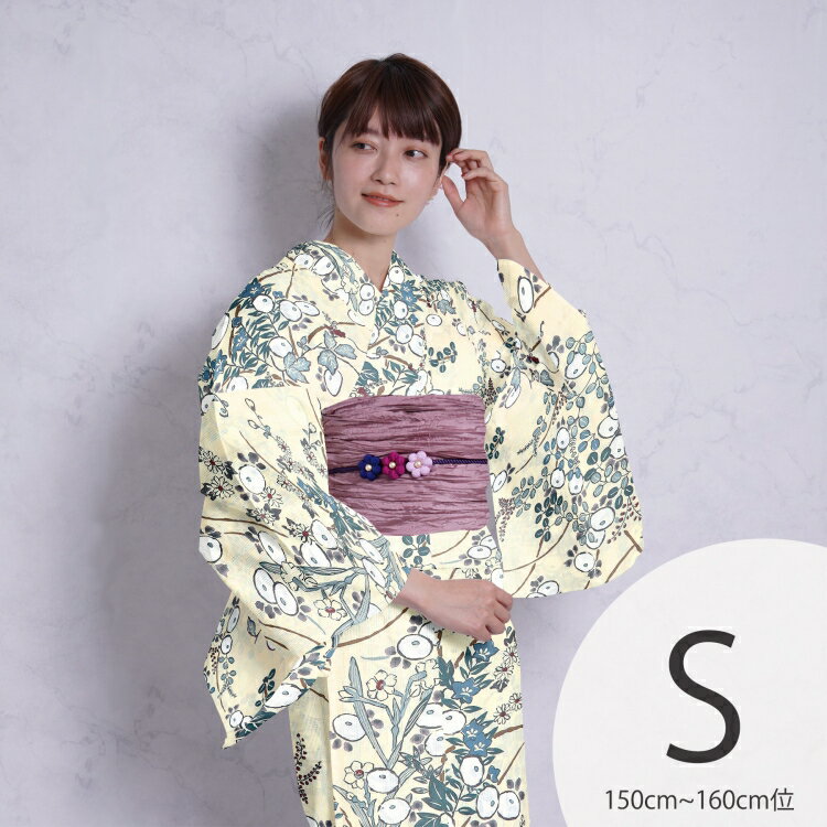 浴衣 セット レディース 浴衣 3点セット(浴衣/帯/下駄)日本製生地 国内染色 和歌山染工 茶色 クリーム 黄色 大人 昭和初期アンティーク復刻 浴衣セット ゆかた 女性 レトロ Sサイズ プチサイズ 小さいサイズ