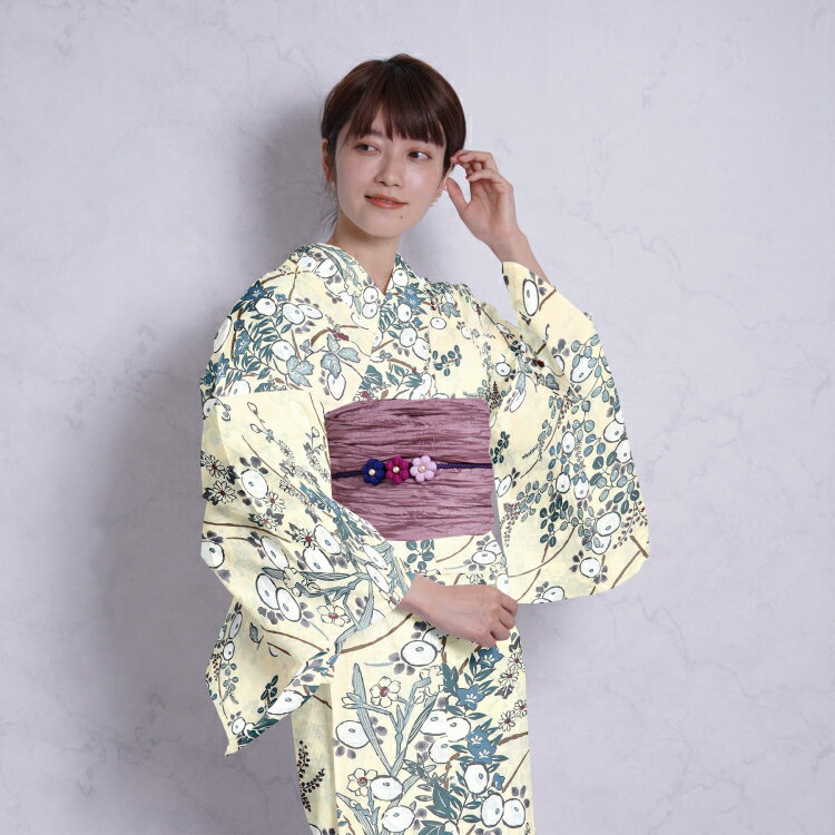 浴衣 浴衣3点セット(浴衣/帯/下駄) 大正浪漫 可愛い レトロ モダン 浴衣セット 大人 レディース 女性 日本製生地 国内染色 和歌山染工 茶色 クリーム 黄色 ゆったりサイズ 大きいサイズ 3L