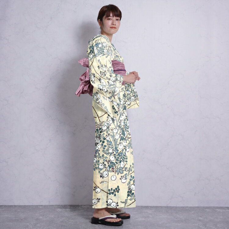 浴衣 セット レディース 浴衣 3点セット(浴衣/帯/下駄)日本製生地 国内染色 和歌山染工 ベージュ ブルーグリーン えんじ ニュアンスカラー 昭和初期アンティーク復刻 浴衣セット ゆかた 女性 レトロSサイズ プチサイズ 小さいサイズ