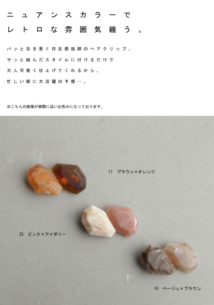 【メール便送料無料】ヘアクリップ アクセサリー ヘアアクセ バレッタ ピン留め ヘアピン バイカラー マーブル ニュアンス ヴィンテージ デザイン モチーフ シック 大人 レディース おしゃれ パーティー 二次会 誕生日プレゼント アンティカフェ ◎メール便可!
