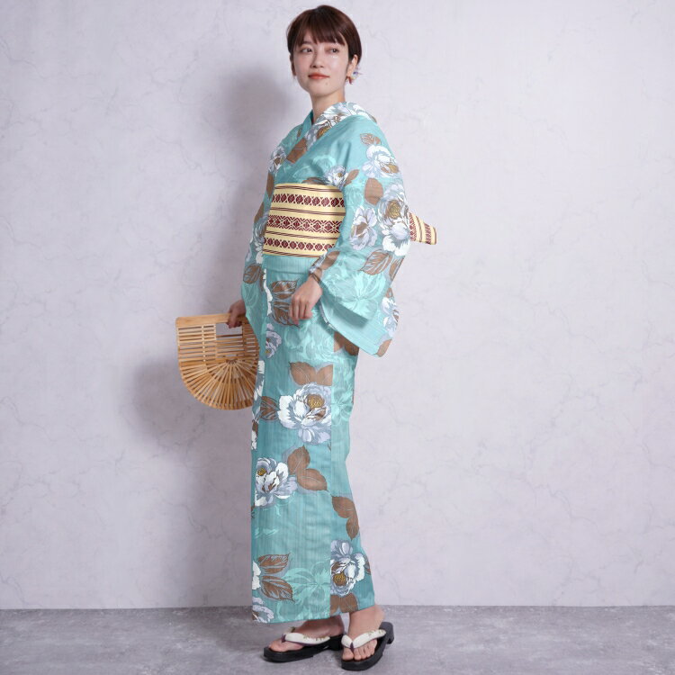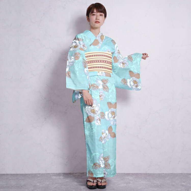 身丈 165cm 袖丈 約49cm 裄丈 約67cm 素材 ゆかた : 綿100% 帯 : ポリエステル 下駄 : 桐(商品画像はイメージです。