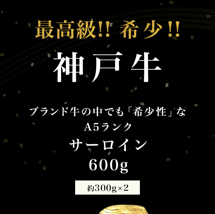 神戸牛 サーロイン 商品名 神戸牛サーロインステーキA5ランクのステーキ用 内容量 600g300gが2パック 原材料 黒毛和牛肉 部位 サーロイン 産地 国産 賞味期限 冷凍(-18℃以下)1年間 販売 【良肉問屋】本家かつめし亭兵庫県加古川市尾上町池田642 シーン ステーキ、焼き肉、お中元、夏ギフト、お歳暮、結婚祝い、記念日やご褒美などの特別なシチュエーションにぜひ一度お試しください。