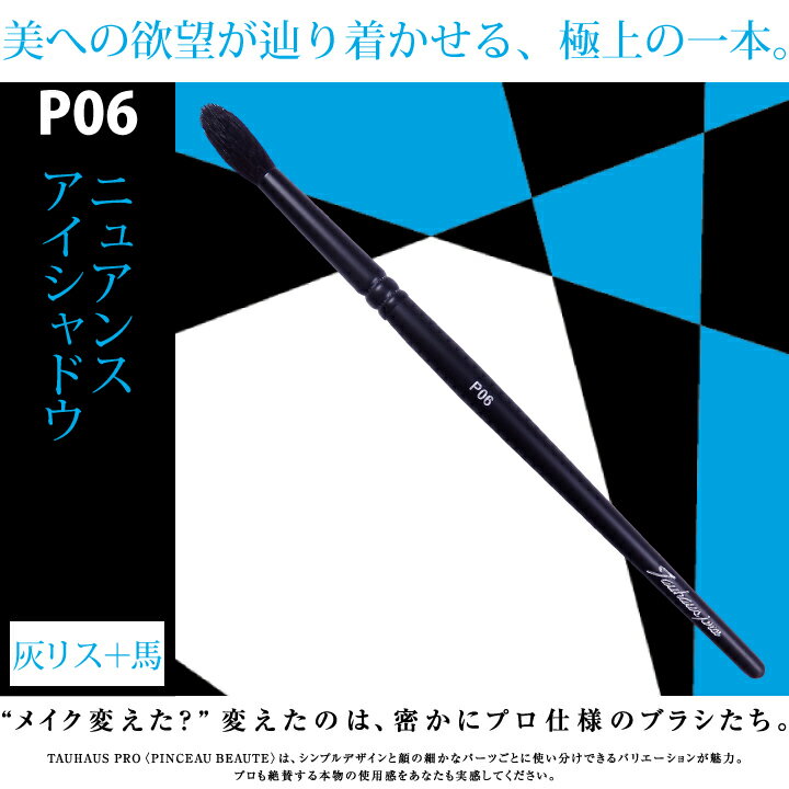 Tauhaus Pro ニュアンス アイシャドウ #P06 素材 毛先 灰リス+馬 金具 真鍮 軸 天然木 サイズ 全長 178mm 毛丈 21mm 金具丈 40mm 軸丈 117mm2020年10月5日メイク道具・ケアグッズ>ブラシ・チップ>アイメイク部門デイリーランキング1位 熊野筆メーカーのTAUHAUSが、プロの世界で活躍するメイクアップアーチストと共につくった妥協なしのプロ専用メイクブラシシリーズ TAUHAUS PRO 〈PINCEAU BEAUTE パンソー ボーテ 〉。